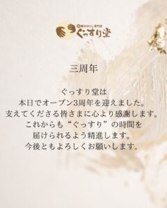 ぐっすり堂は本日でオープン3周年を迎えました。支えてくださる皆さまに心より感謝します。これからも“ぐっすり”の時間を届けられるよう精進します。今後ともよろしくお願いします。ぐっすり堂FacebookXBluesky